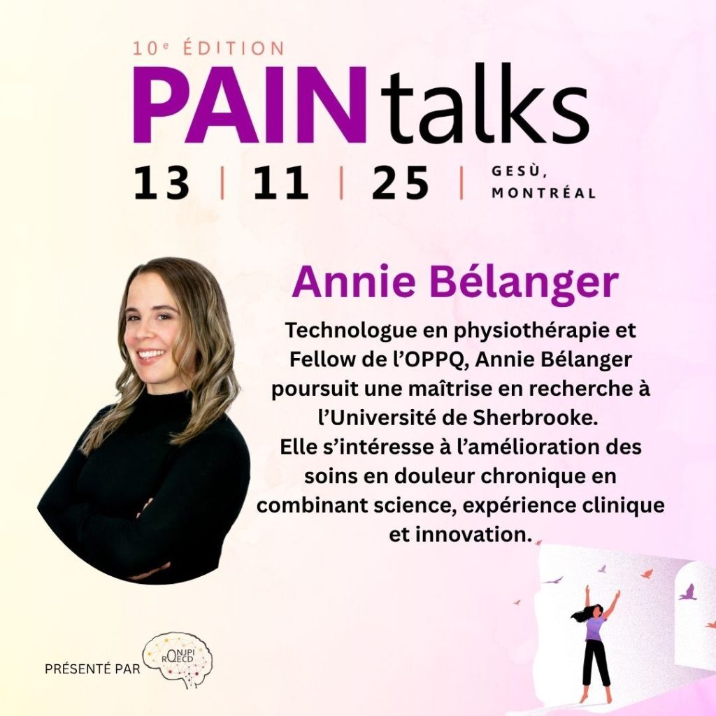 Le Réseau québécois des étudiants-chercheurs sur la douleur (RQECD) est fier d’annoncer la 10e édition du PAINtalks, qui se tiendra le 13 novembre prochain à 18h30 (EDT) en mode hybride, en direct du Gesù à Montréal. L’inscription est obligatoire, on espère vous y voir en grand nombre!