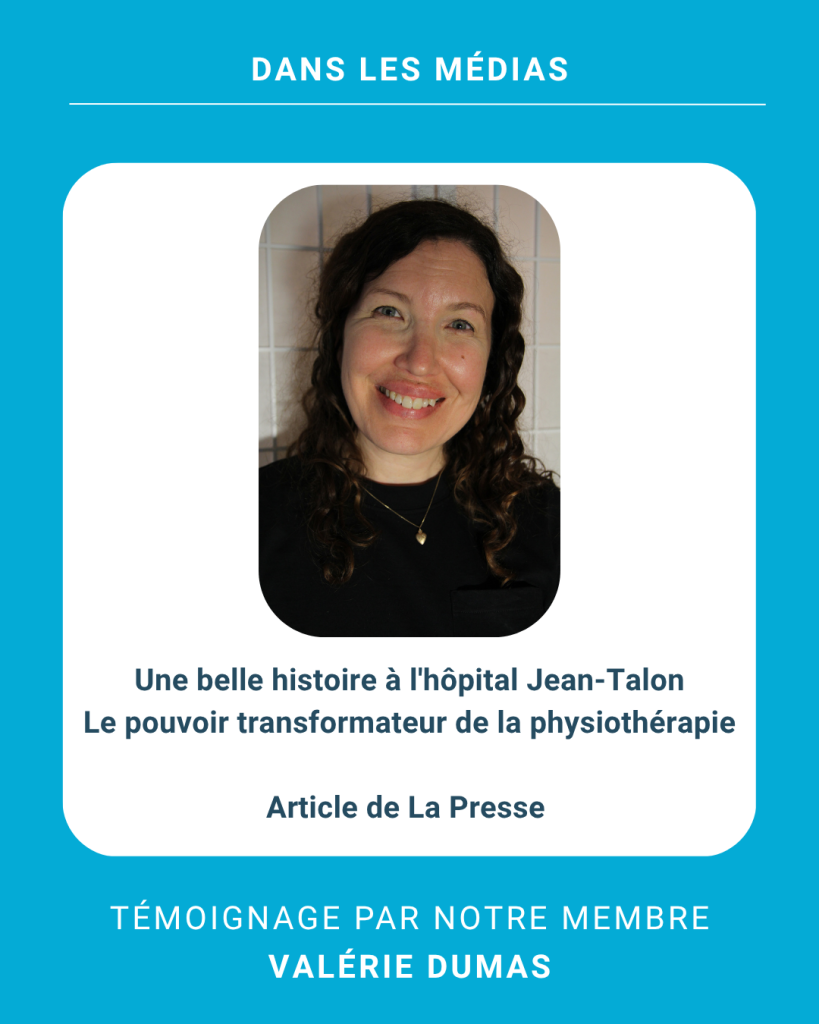 La physiothérapie est accessible et il existe des solutions à vos douleurs! L’AQP continue de faire rayonner ses membres par leurs actions compétentes et essentielles. Nous saluons le travail de madame Dumas, bravo pour cette histoire lumineuse! Valérie Dumas avait été récipiendaire du Prix Engagement Étudiant AQP 2025, elle continue de faire honneur à cette reconnaissance!