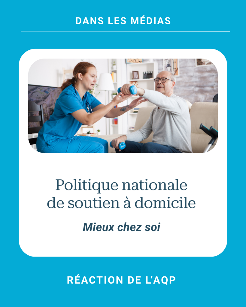 L’Association québécoise de la physiothérapie (AQP) accueille favorablement cette orientation gouvernementale qui confirme la place centrale du domicile comme milieu de vie et qui traduit une volonté claire d’améliorer l’accessibilité et la continuité des services dans la communauté.